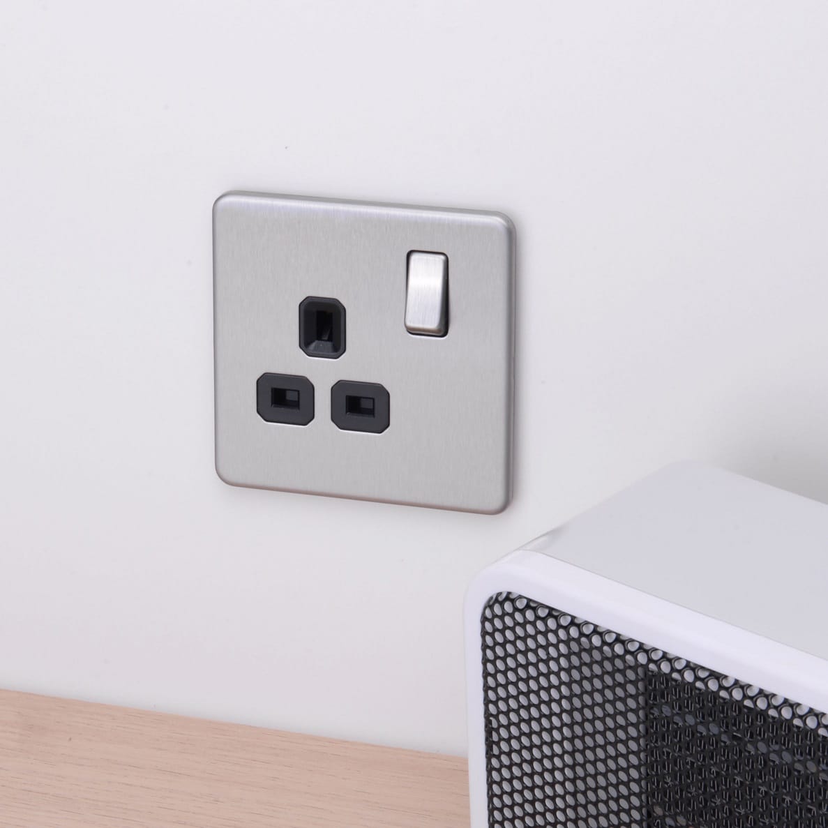 Our screwless flat plate 1 Gang 13A switched socket is made from high-quality ultra-slim 1.0 mm premium steel to create a modern, stylish appearance. This product features a gasket protection plate for integral moisture protection and to assist when mounting on uneven walls.