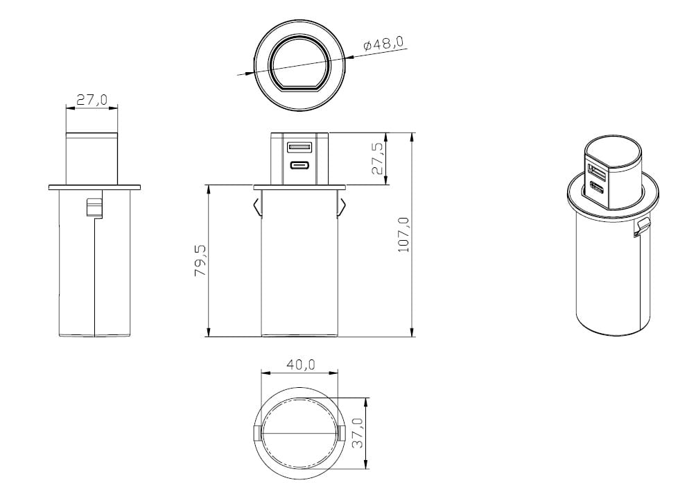 Miniature Pop-up Dual USB-A+C Quick charger Specification