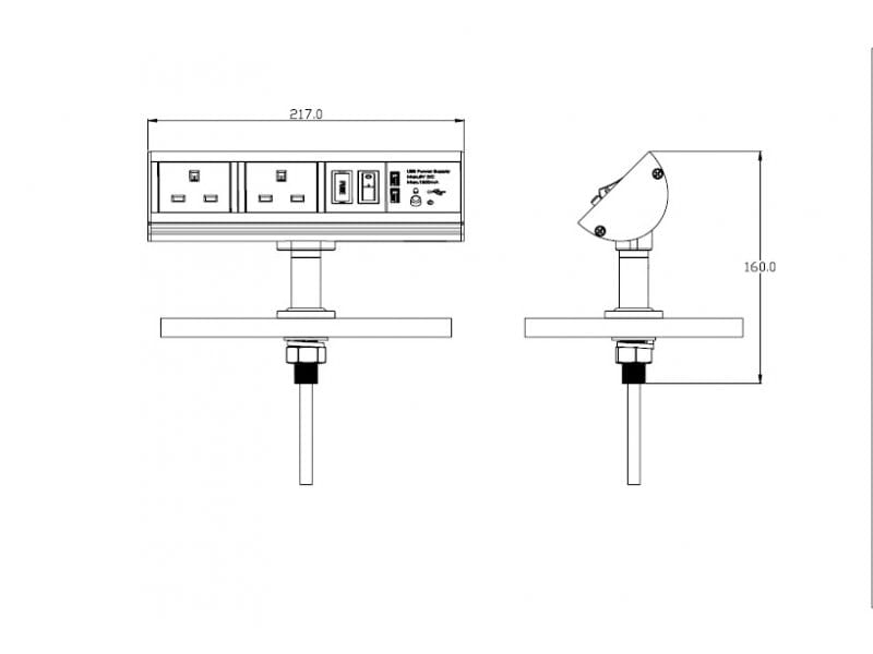Our Stand Alone USB Power Station – 2 x 13A BS socket, Dual USB-A charger made from high-quality aluminium housing and nylon module. A unique design and stylish appearance. This product is suitable for installation at a desk surface or under cabinet location. Ideal for a study, kitchen, hotel or meeting room. The flexible style maintains sleek & refined lines.
